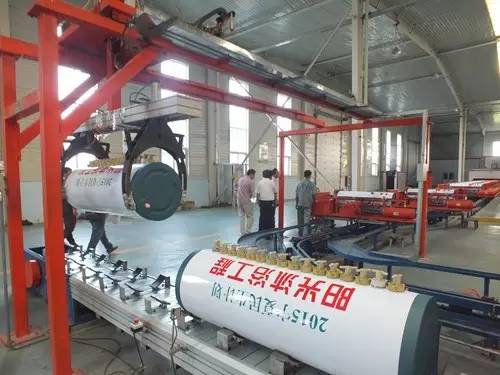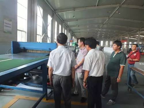 在參觀完太陽能真空集熱管制造車間后又到了太陽能工程設(shè)備總裝車間,先后參觀了全自動(dòng)下料開平設(shè)備、轉(zhuǎn)塔式全自動(dòng)數(shù)控沖床生產(chǎn)線、全自動(dòng)外皮雙頭縮口滾花機(jī)、臥式反向積放發(fā)泡生產(chǎn)線、環(huán)戊烷聚氨酯高壓發(fā)泡機(jī)、全自動(dòng)數(shù)控打包生產(chǎn)線以及壁掛太陽能生產(chǎn)線等等。