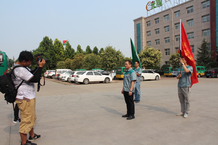 圖一:(愛凡杰集團(tuán)代表攜旗幟進(jìn)入我廠區(qū))
