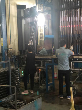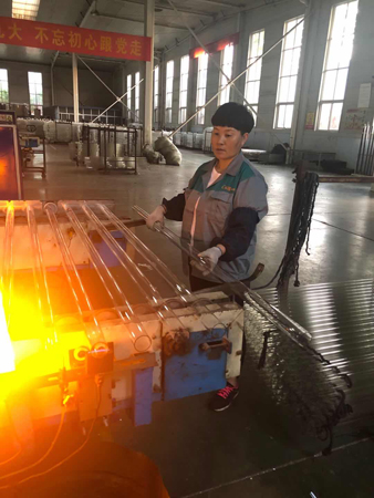 “五.一”這天,驕陽(yáng)似火。室外溫度高達(dá)35度,真空管車間,在火考中作業(yè),工人們揮汗如雨戰(zhàn)高溫。他們的口號(hào)叫得響:寧流萬(wàn)滴汗,不出一次品。